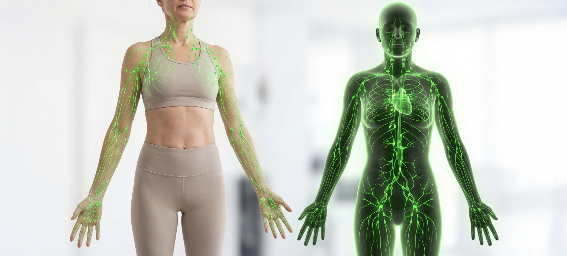 The lymphatic system clears excess fluid, proteins, and waste from tissues. When it is disrupted—by surgery, radiation, or injury—fluid begins to accumulate, leading to persistent swelling and a feeling of heaviness.